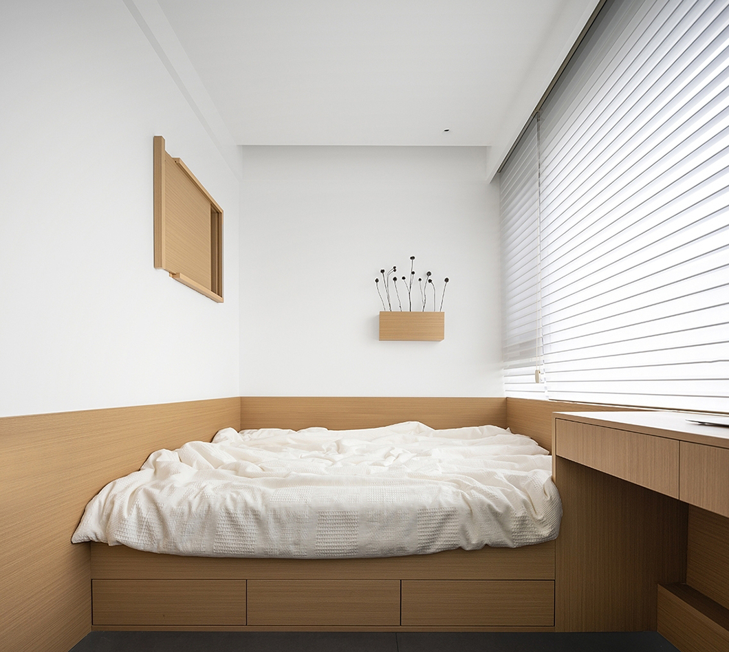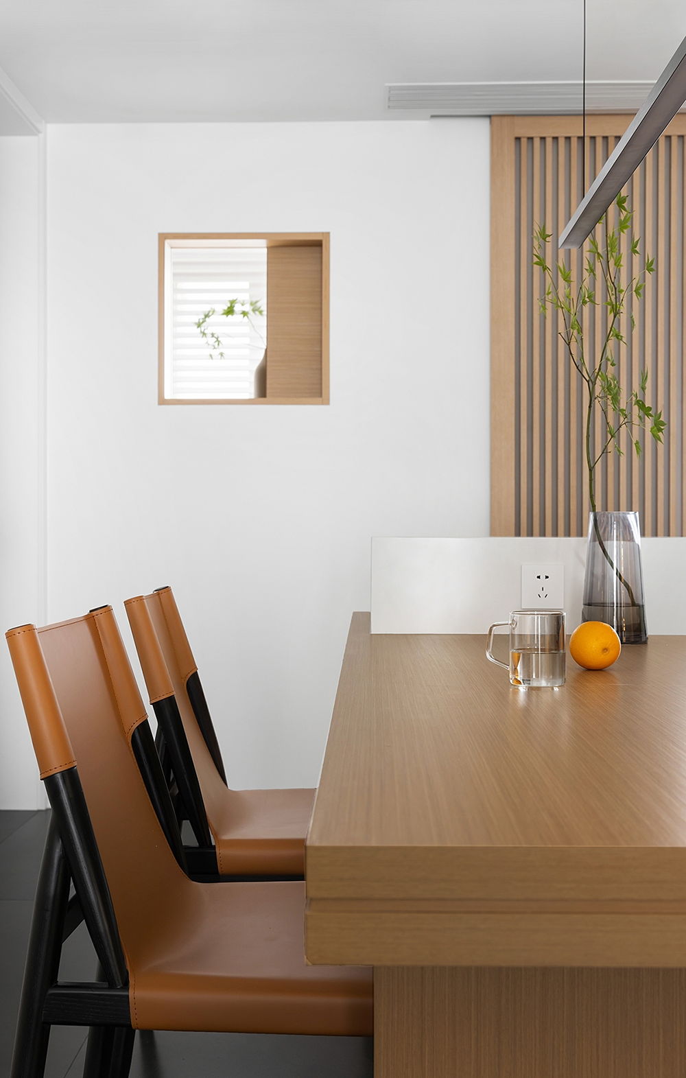 一個小窗,選擇性的與公區(qū)溝通,也讓空間有了俏皮的感覺。