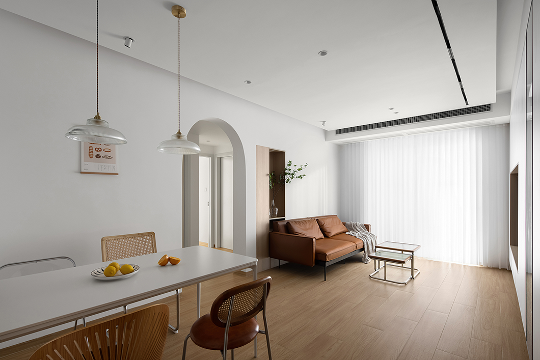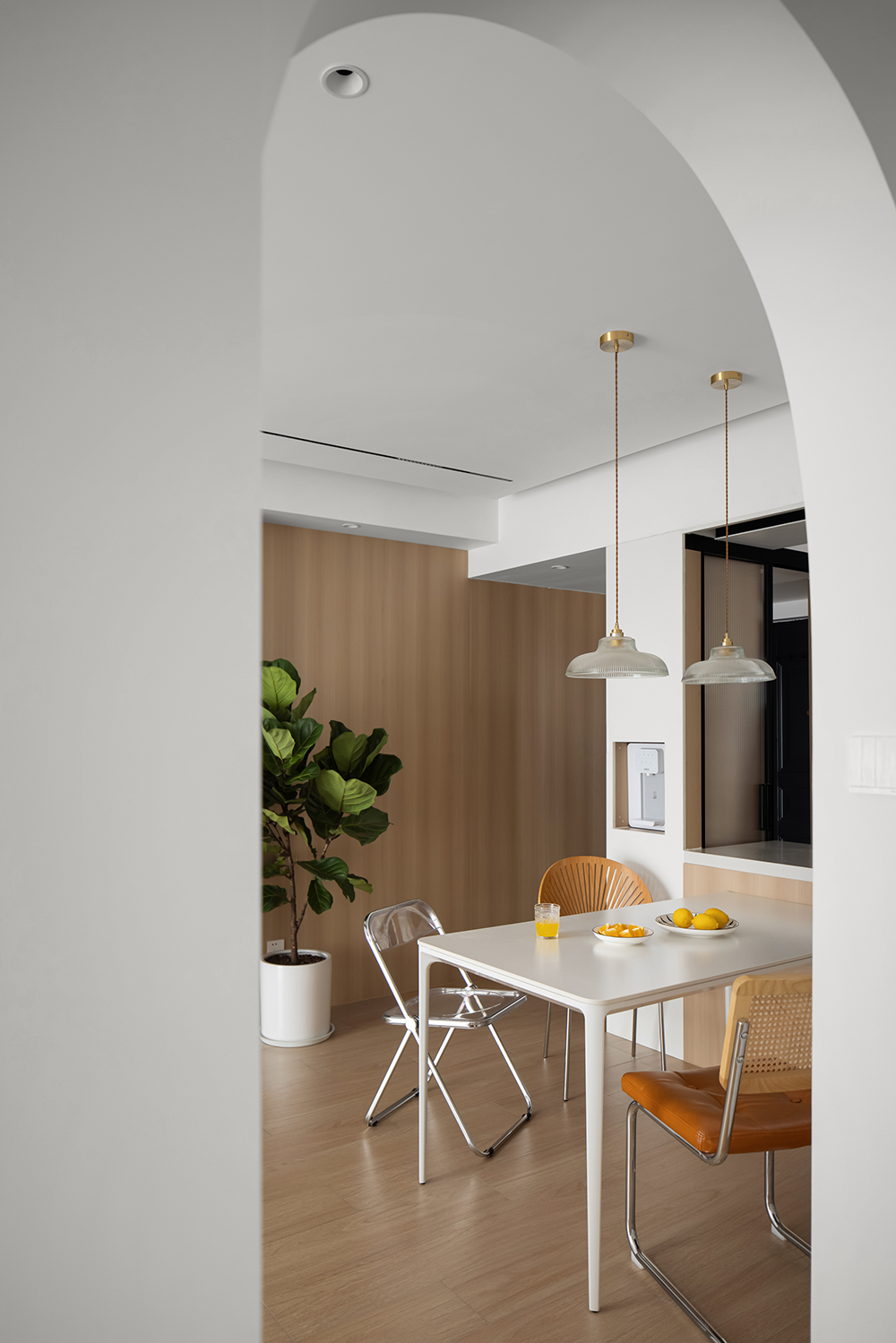 門洞加入了弧形設計,淡化直角銳利,視覺美觀且柔和。