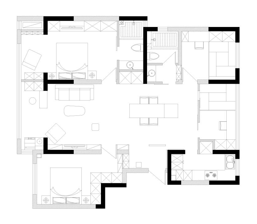 這次設計業(yè)主居住人口較多,在原來的三室的基礎上要增加成四室,要保證每個家庭成員的獨立性,盡可能滿足儲物、工作、學習的功能。