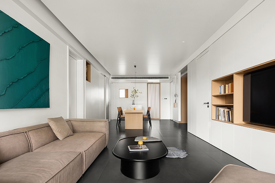 電視柜造型簡約大氣,收納能力也很強。整體設計簡潔干凈,置身其中彷佛能使人拋卻雜念,盡享愜意生活。