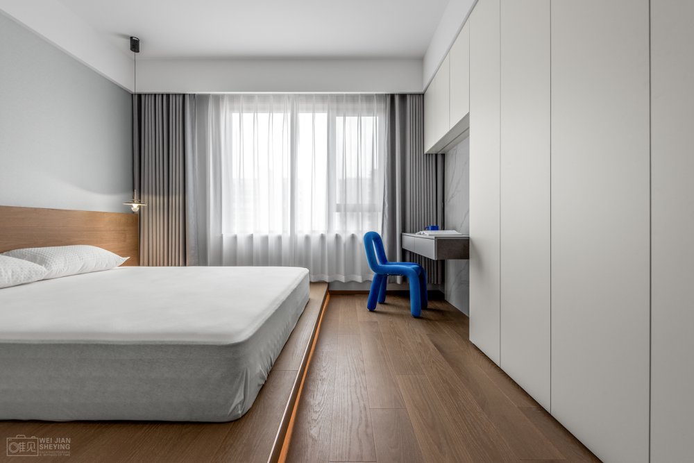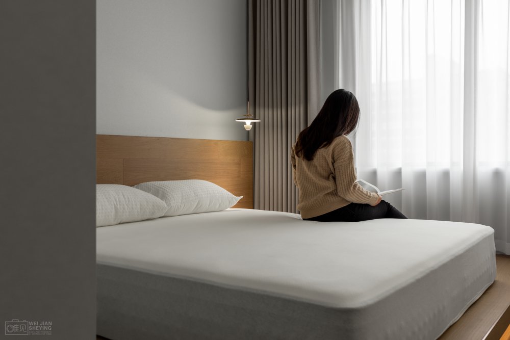 臥室取靜,目光所及之處,皆是不擾人的色彩,溫和的木質(zhì),柔軟的織物,溫暖的燈光。