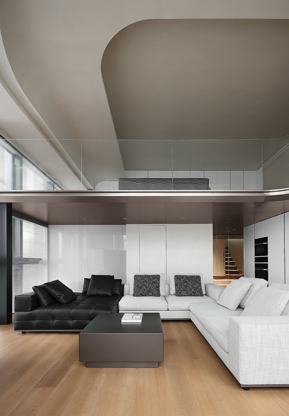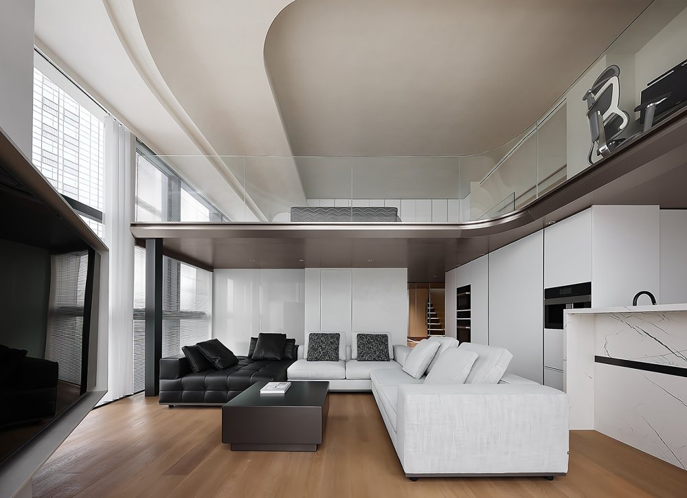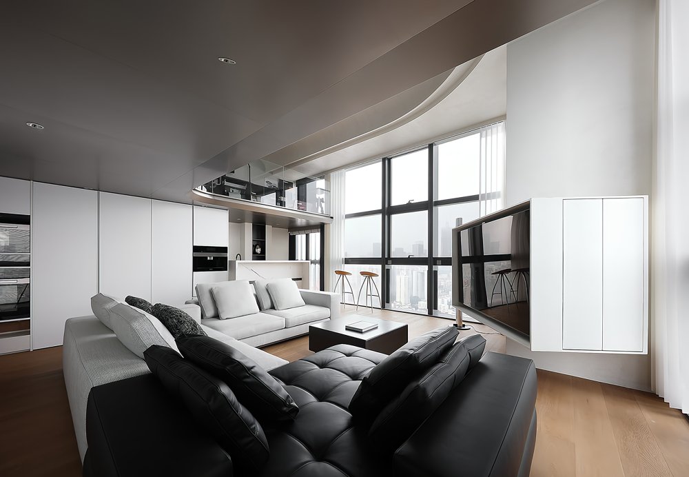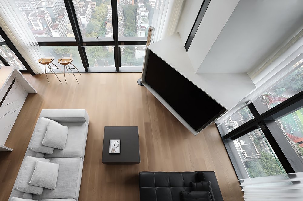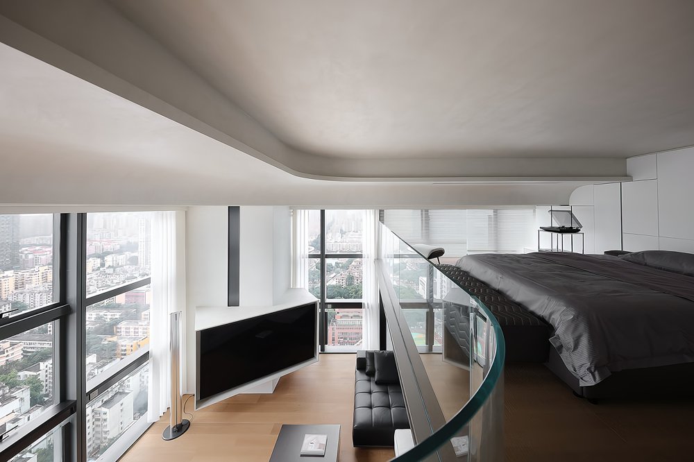 二樓LOFT的留給臥室功能極簡(jiǎn)的黑白灰線條完美融合于極致的空間設(shè)計(jì)中呈現(xiàn)了一幅靈動(dòng)唯美的空間美窗外的景觀一覽無(wú)遺讓人心曠神怡
