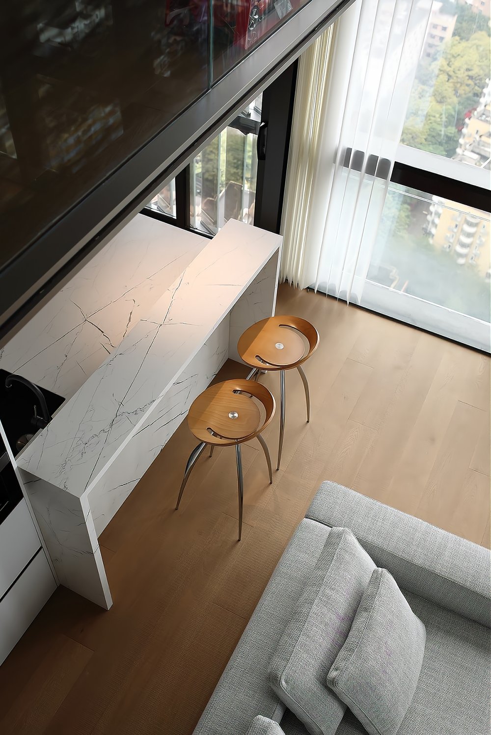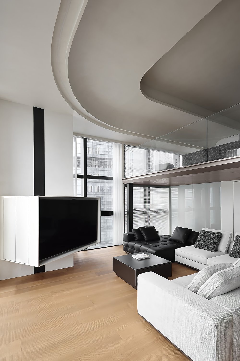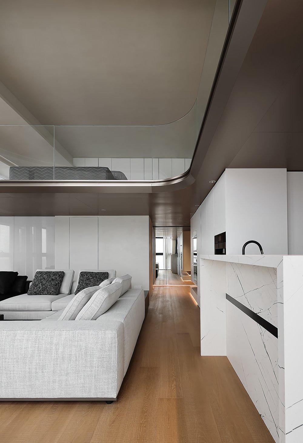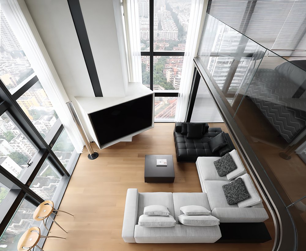 二樓LOFT的留給臥室功能極簡(jiǎn)的黑白灰線條完美融合于極致的空間設(shè)計(jì)中呈現(xiàn)了一幅靈動(dòng)唯美的空間美窗外的景觀一覽無(wú)遺讓人心曠神怡