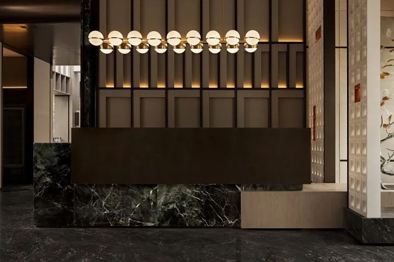 大堂是營造視覺記憶的觸點(diǎn),深色調(diào)充滿莊重感,白色調(diào)則高雅時(shí)尚,一深一淺交匯出奢華大氣的大堂。借助窗外的綠景,限度引入自然光線,使空間中蘊(yùn)生清新與雅致。