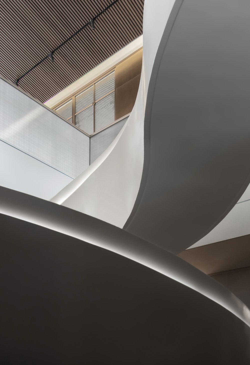 建筑與人文、自然、空間聯(lián)結(jié)共生,物境、情境、意境妙合無垠,生活序章正徐徐打開。在地深厚文脈為索引,透過線條、材質(zhì)、肌理等元素的當(dāng)代演繹,挖掘城市豐富的人文底蘊與自然美學(xué)??v向敘事的手法將秩序性、層次性、儀式性鋪展開不同層次。光影的繪寫中,予人意猶未盡的視覺觀感與心境體驗。
