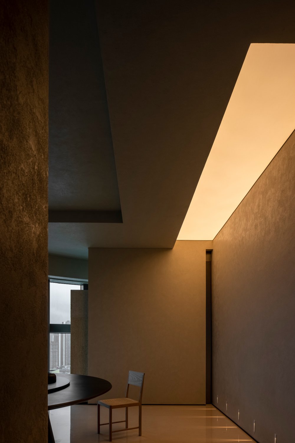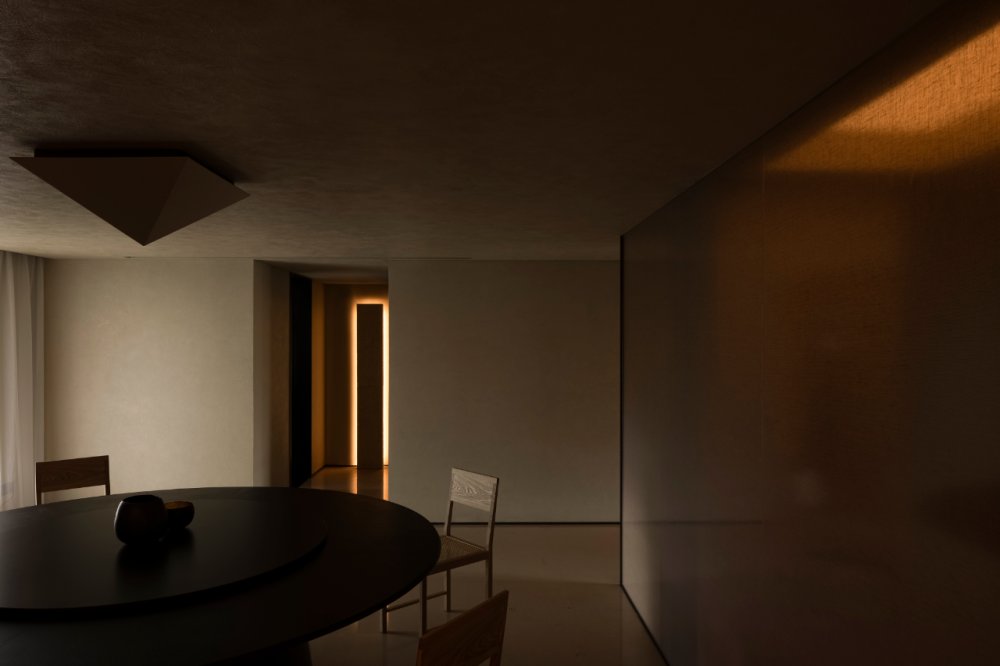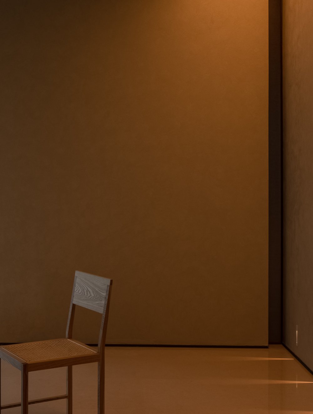 物體與光線遇見形成的場所。光與物件相互依存,他們并不是獨立的思考體系,更不是對立面,空間中的造型可以不為功能所動,但它卻是光的制造者,光再回饋給這些物體,觸碰一些新的空間情緒。