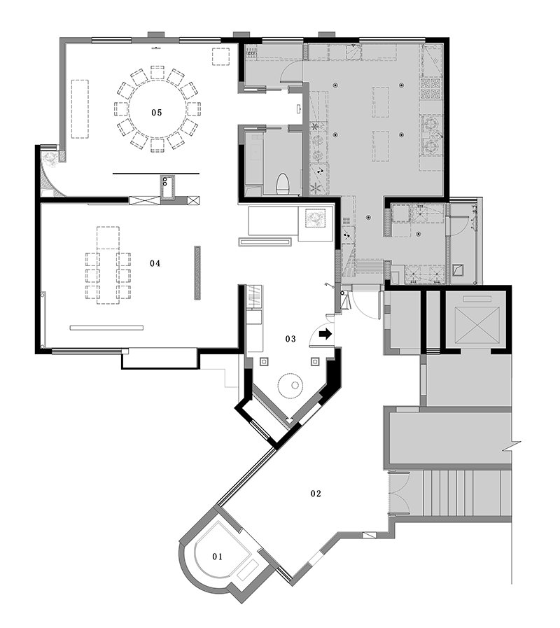 三個包房垂直串聯(lián)三層空間,有效地讓空間私密感與獨立性達(dá)到最佳狀態(tài)。一個需要顯性的場所,在這里我所說的顯性是當(dāng)代接待空間的一個現(xiàn)象,這是對場所品質(zhì)感的一種訴求,也是項目落筆前我們思考的一個重要的細(xì)節(jié)。