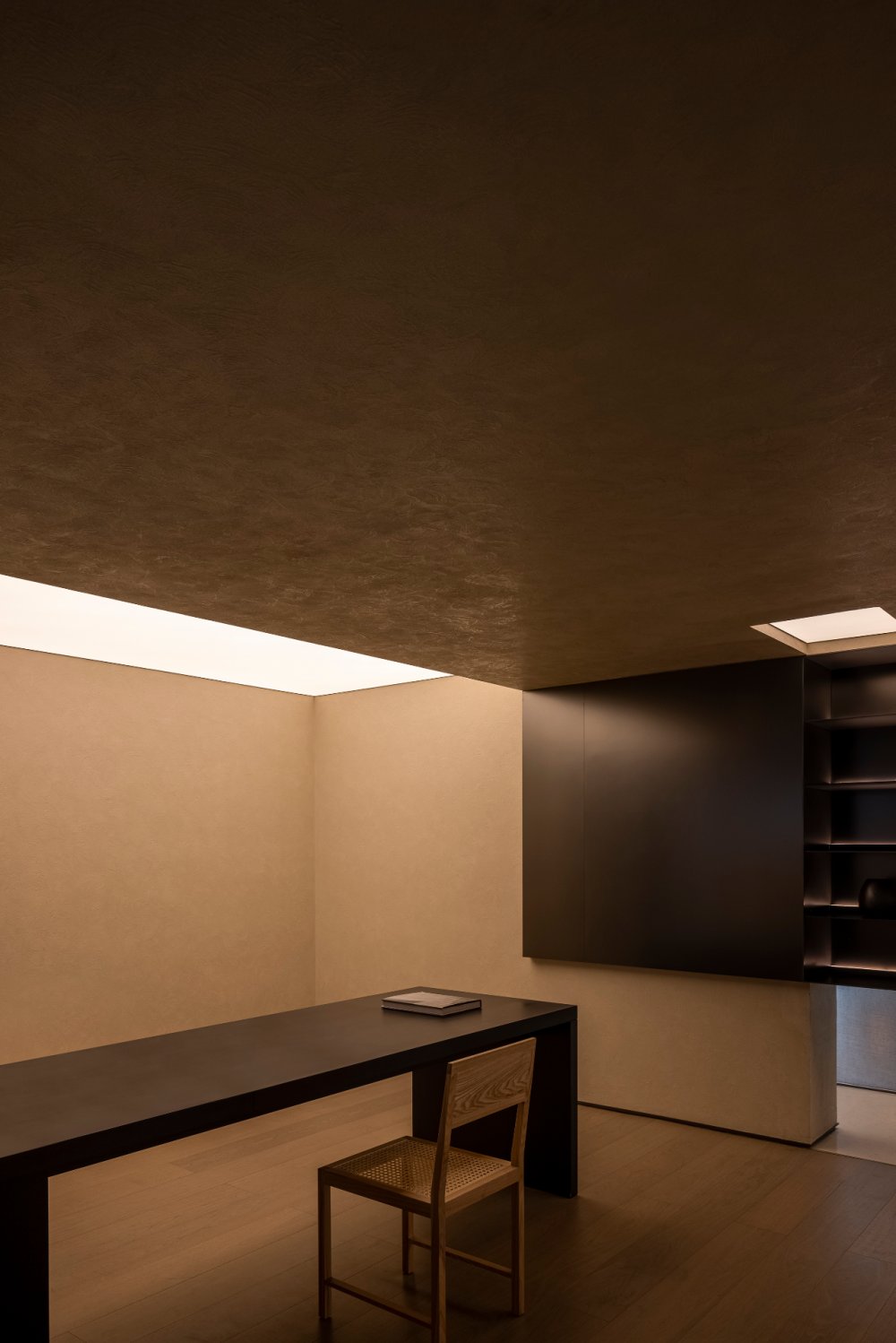 我們通過在自然燈光與自然材料的質(zhì)感中尋找規(guī)律,用一種無意感讓人與空間更加的親近,以達(dá)到空間對人具有向心力。這種創(chuàng)新的原始性并非是一種指向性的未來,而是對空間狀態(tài)的一種探索。