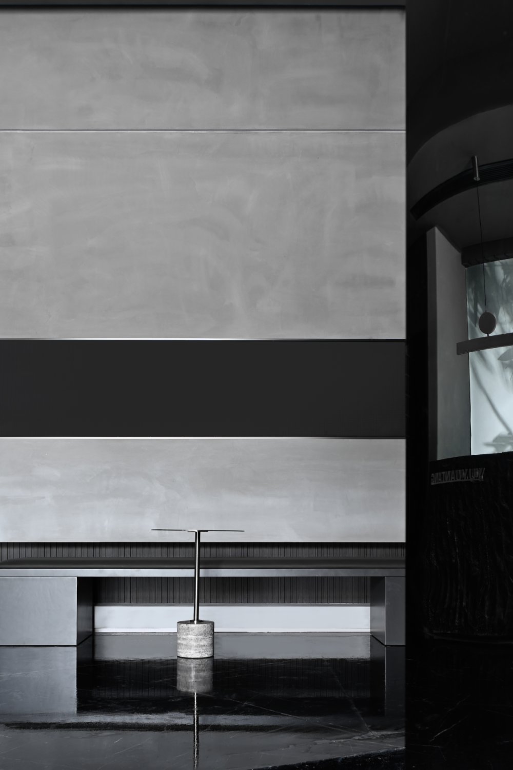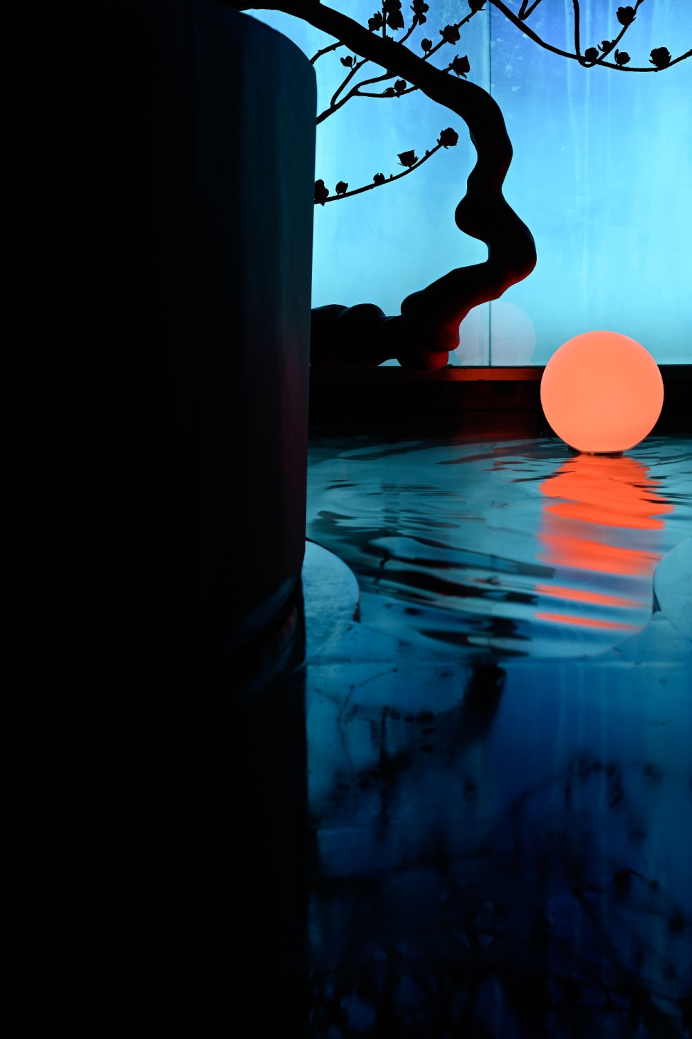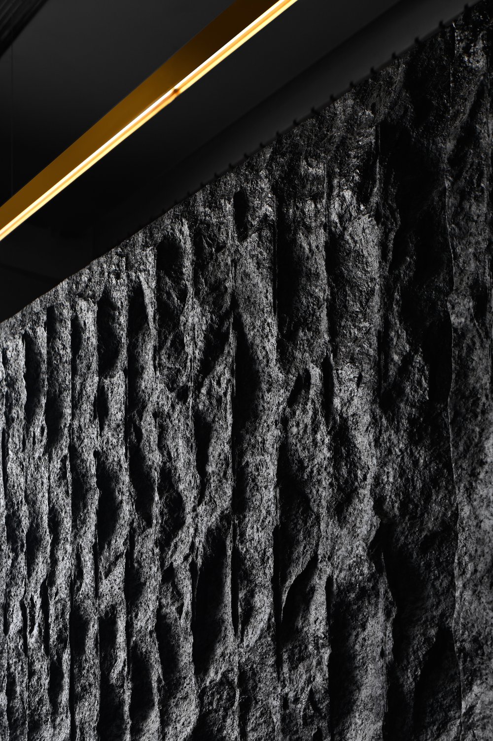 - 山與水的結(jié)合,是江南小景的象征。錯(cuò)落有致的線條盤踞在整個(gè)空間之上,搭配著暖黃的燈光,“野蠻”地從空間生長(zhǎng)開來。在整體的幽暗環(huán)境的襯托下,一絲微光點(diǎn)綴,讓光與“影”曖昧互融。